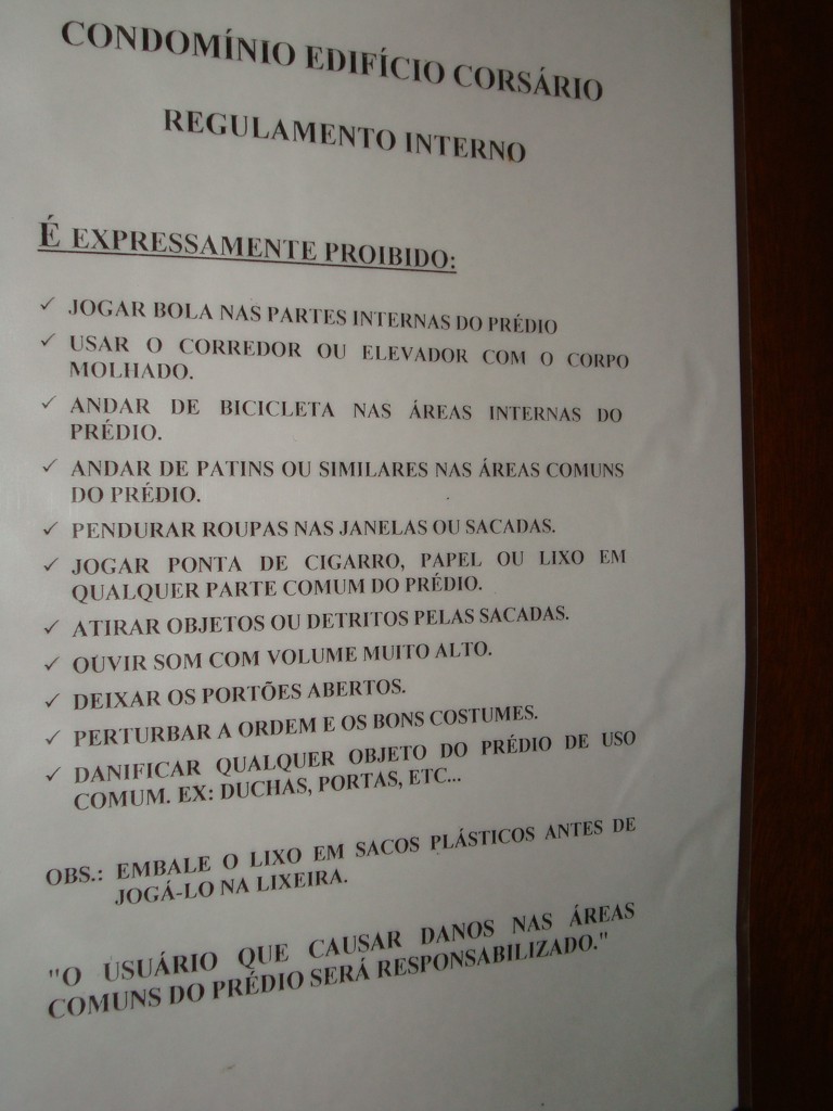 Segue regulamento do Condomínio: